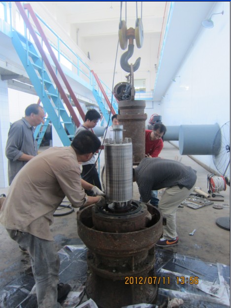 在中秋、國慶“兩節(jié)”來臨之際,為了讓荊城人民度過一個歡樂祥和的假日,市供水總公司第三水廠組織人員對全廠供水設施進行了全面檢查和維修,確保了各種設備的安全運行,為兩節(jié)期間供水生產提供了可靠保障。(圖為水廠技術人員正在搶修取水提升3#機組)。