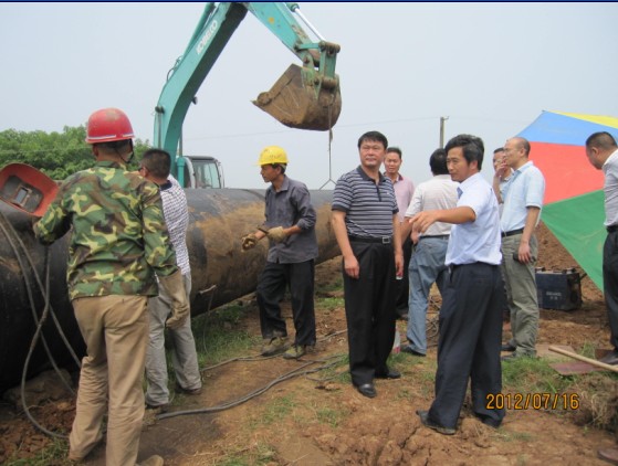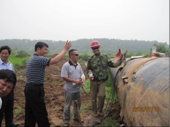 總經(jīng)理陳衛(wèi)國(guó)(左四)、黨委書記陳永根(右二)在城區(qū)安全飲水工程施工現(xiàn)場(chǎng)聽取施工負(fù)責(zé)人匯報(bào),要求加快進(jìn)程,確保質(zhì)量,按時(shí)完工,向全市人民交上一份合格答卷。