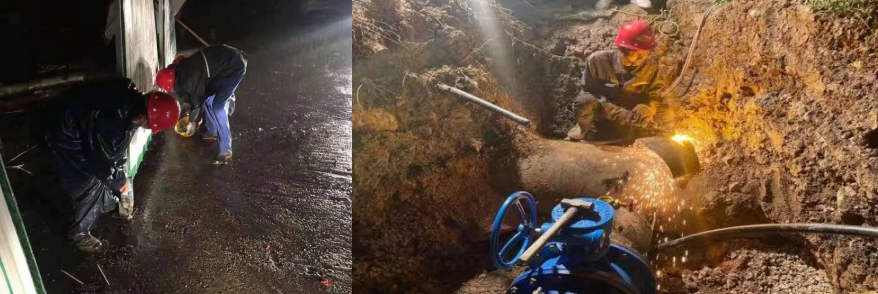 2020年1月28日上午,集團(tuán)維修公司接到用戶電話,反映塔影路與白云大道交匯處爆管。搶修隊(duì)伍聞令而動(dòng),立即趕赴現(xiàn)場,在了解具體情況后,黨員吳英煉帶頭與時(shí)間賽跑,克服地面硬化、并行管道多、不能通過機(jī)械開挖等諸多不利因素,人工開鑿,找準(zhǔn)漏點(diǎn),鏖戰(zhàn)3小時(shí),終于趕在中午“飯點(diǎn)”恢復(fù)供水,解決了用戶的“燃眉之急”。